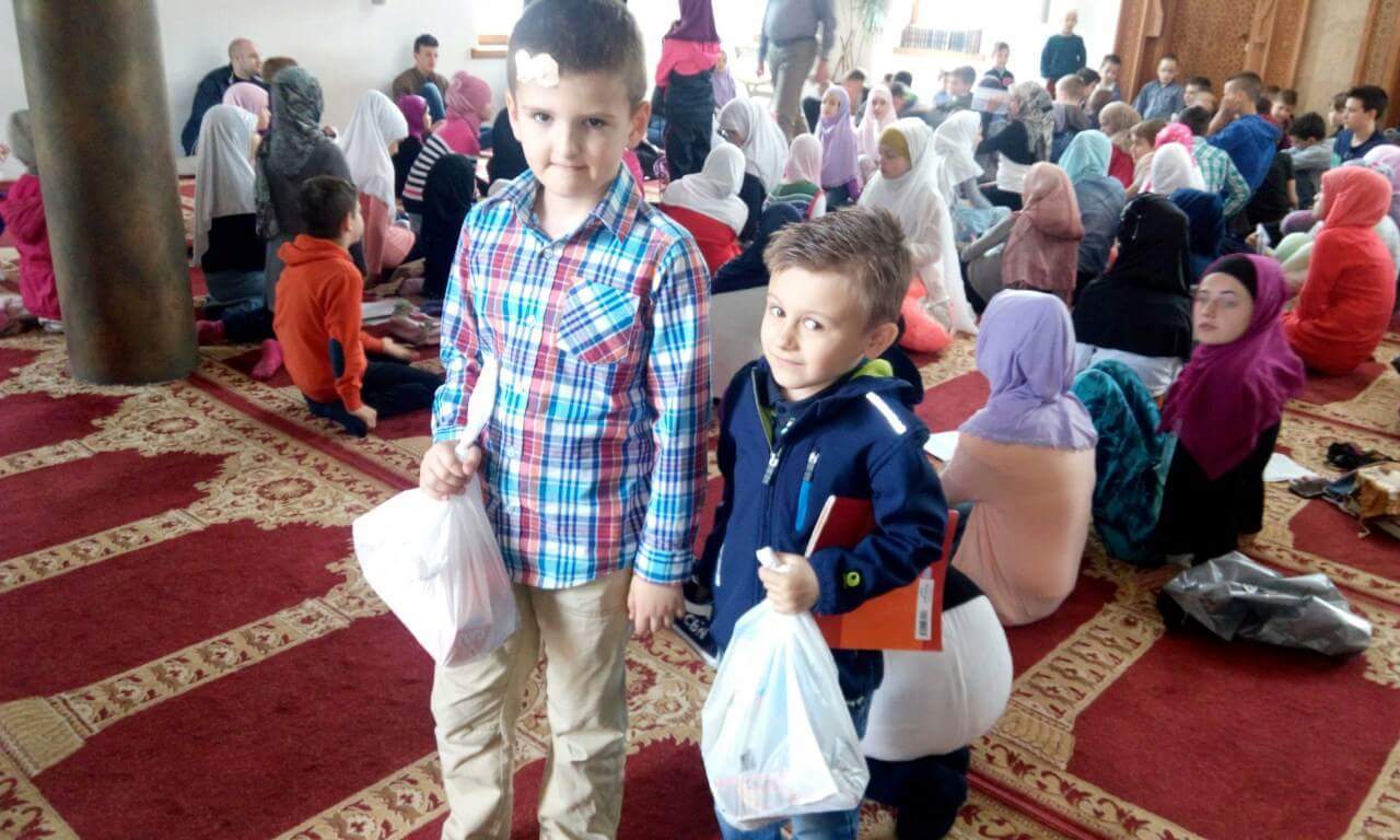 On 22.04. 2016 Smješak prepared sweets to 120 children and the reason is as follows. Last weekend in the beautiful Stupska mosque 'Umar ibn al-Khattab "held the final examination of mekteb classes - hame, led by the imam of the mosque Mubin ef. Neimarlija. In a crowded mosque attendees of 8 groups of them more than 120, were answering before the commission that each year comes from the Islamic community. Hatma past in the festive atmosphere in the presence of proud parents and other congregation members.